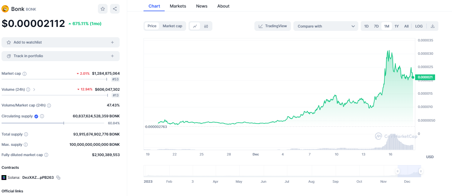 Loyal Blockhead readers will be well informed about Solana-backed meme coin BONK and its recent astronomical surge. Now more than 675% over the month, BONK is one of the top-performing cryptocurrencies in December, putting the likes of Bitcoin, Ethereum, and even Solana itself to shame.