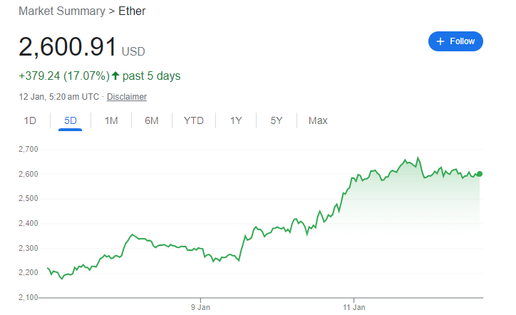 Ethereum has risen more than 17% over the past five days whilst Bitcoin, which did pump ever so slightly after the SEC's announcement before falling, has increased a measly 5%.