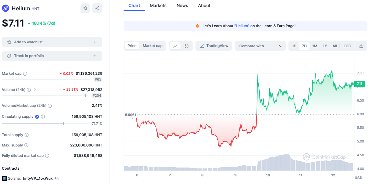 Another one that'll be familiar to the Blockhead fam, Helium has risen 18% over the past week.