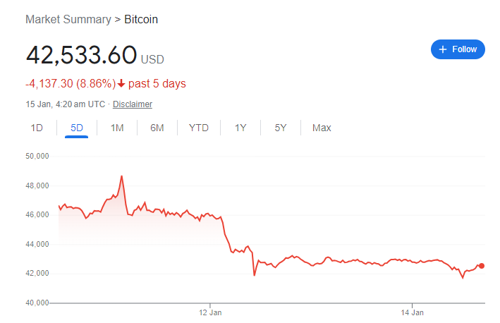 In case you haven't noticed, things aren't going particularly well for Bitcoin. Despite all the hype surrounding Bitcoin ETFs, the world's largest cryptocurrency has fallen around 9% over the past five days, experiencing its biggest single-day drop since August.