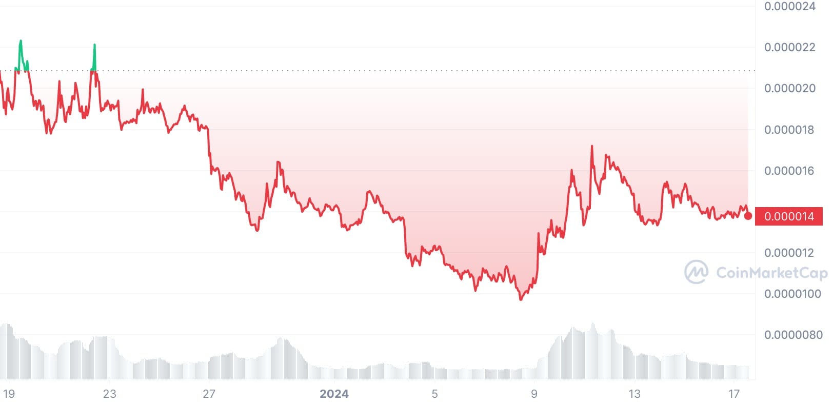 Amid the Solana airdrop frenzy of December 2023, one winner was the BONK token (also Blockhead's Dog of the Year 2023), which climbed by 800% during the month to peak at $0.000035 on Dec 15 (the day the Saga phone sold out).