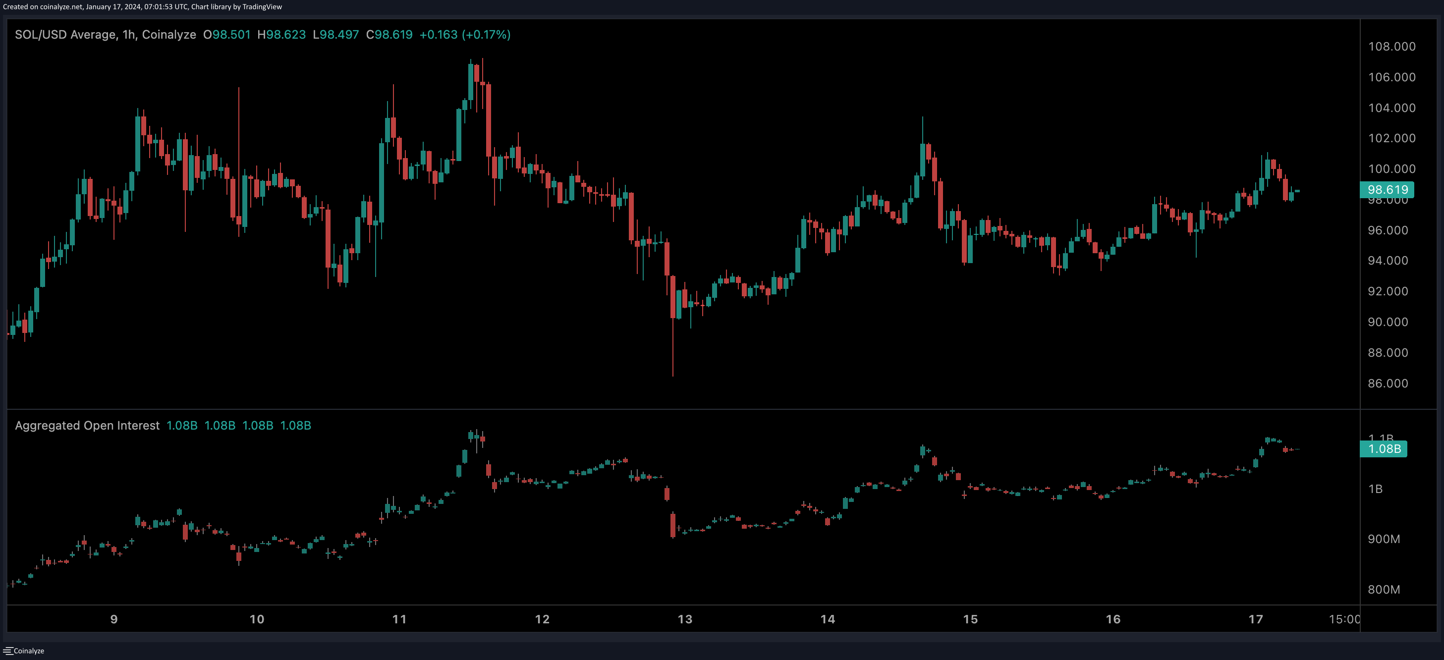 Like the rest of the crypto market, SOL has taken a breather from its upward trajectory but its price has remained rather resilient around the $90-100 price range since the start of the year. At the time of publishing, SOL stands at $98.5, or up 2.75% in the past 24 hours.