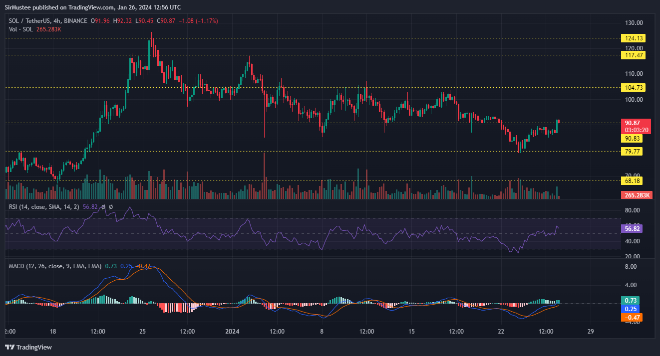 Solana’s price action on the four-hour timeframe showed that buyers were getting ready for another bullish leg up. Earlier in January, SOL had done a massive run up to $126 but the dampened sentiment in the crypto market led to a significant retracement for the altcoin.