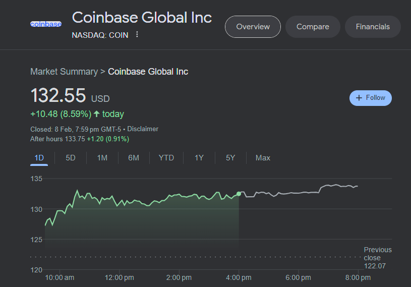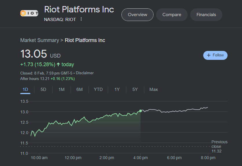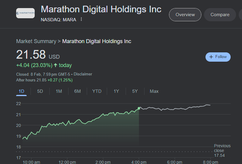 Even crypto exchange Coinbase and mining firms Marathon Digital and Riot Platforms have seen their stock prices jump as a result of Bitcoin's recent jump.