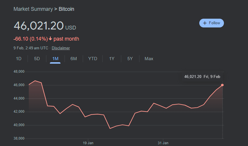 At the time of writing, Bitcoin is trading at $46,021. Upon the SEC's announcement of its approval, Bitcoin briefly topped the $47K mark but dropped to as low as sub-$40K.