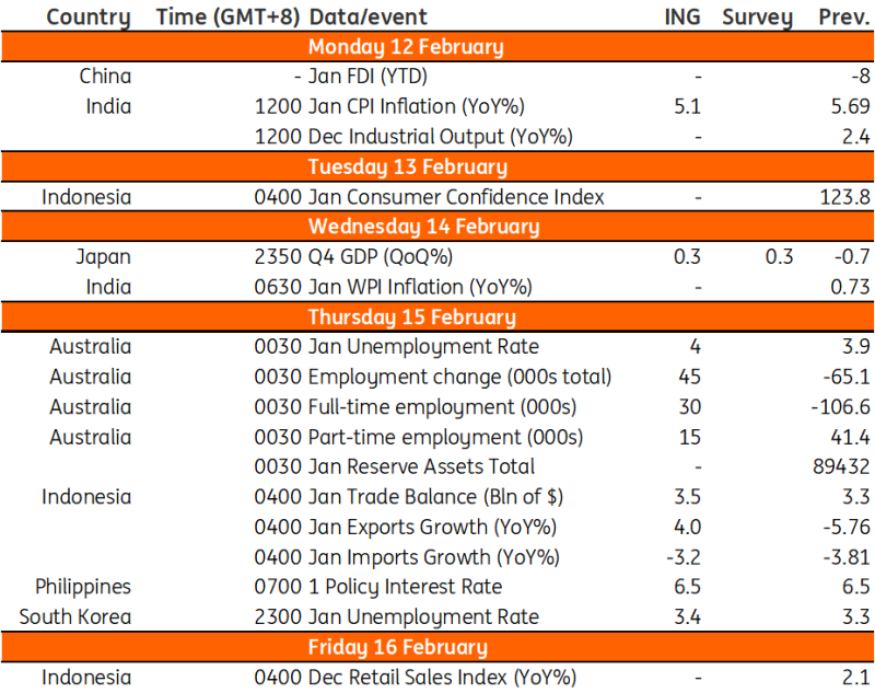 The latest jobs report from Australia features in this week's data calendar. Meanwhile, the Philippines holds a policy meeting and is expected to pause.