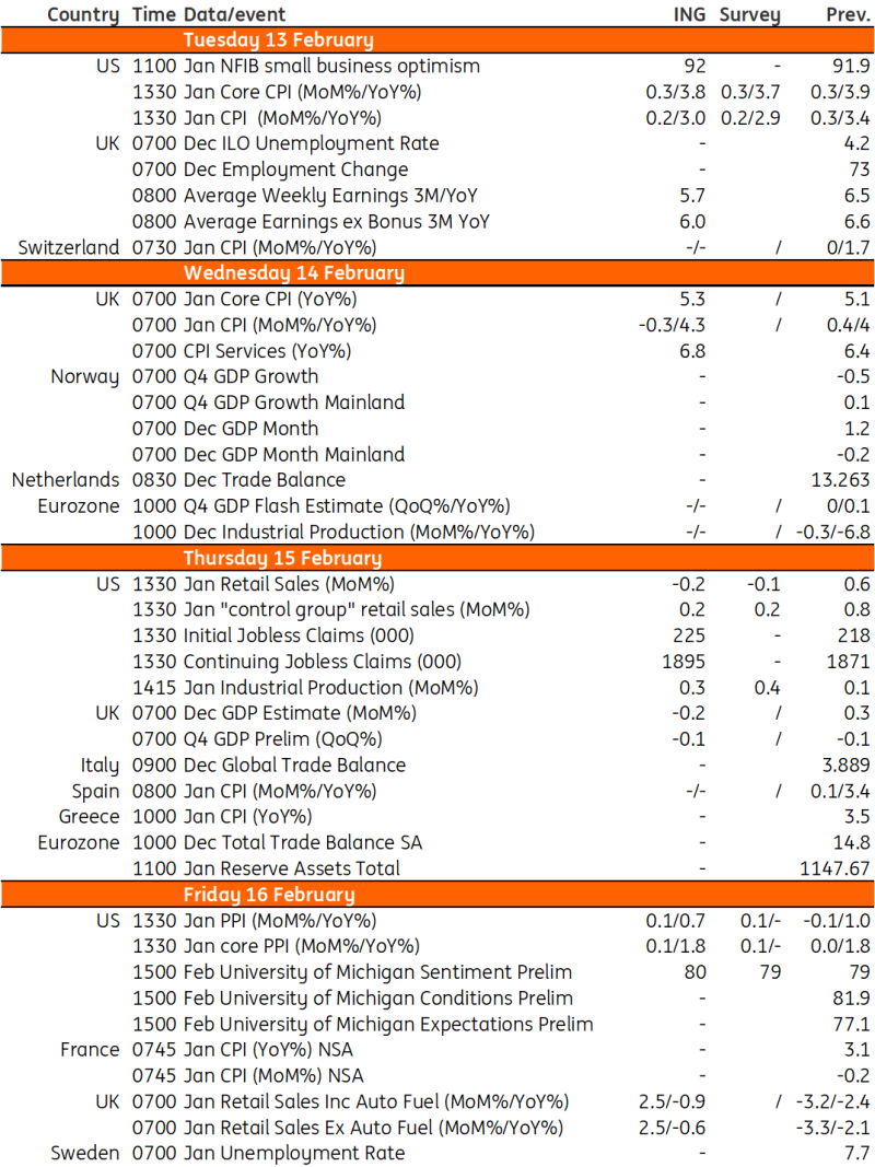 The main data highlights in the US this week will be the release of core inflation data along with retail sales, which are expected to come in soft given auto sale numbers.