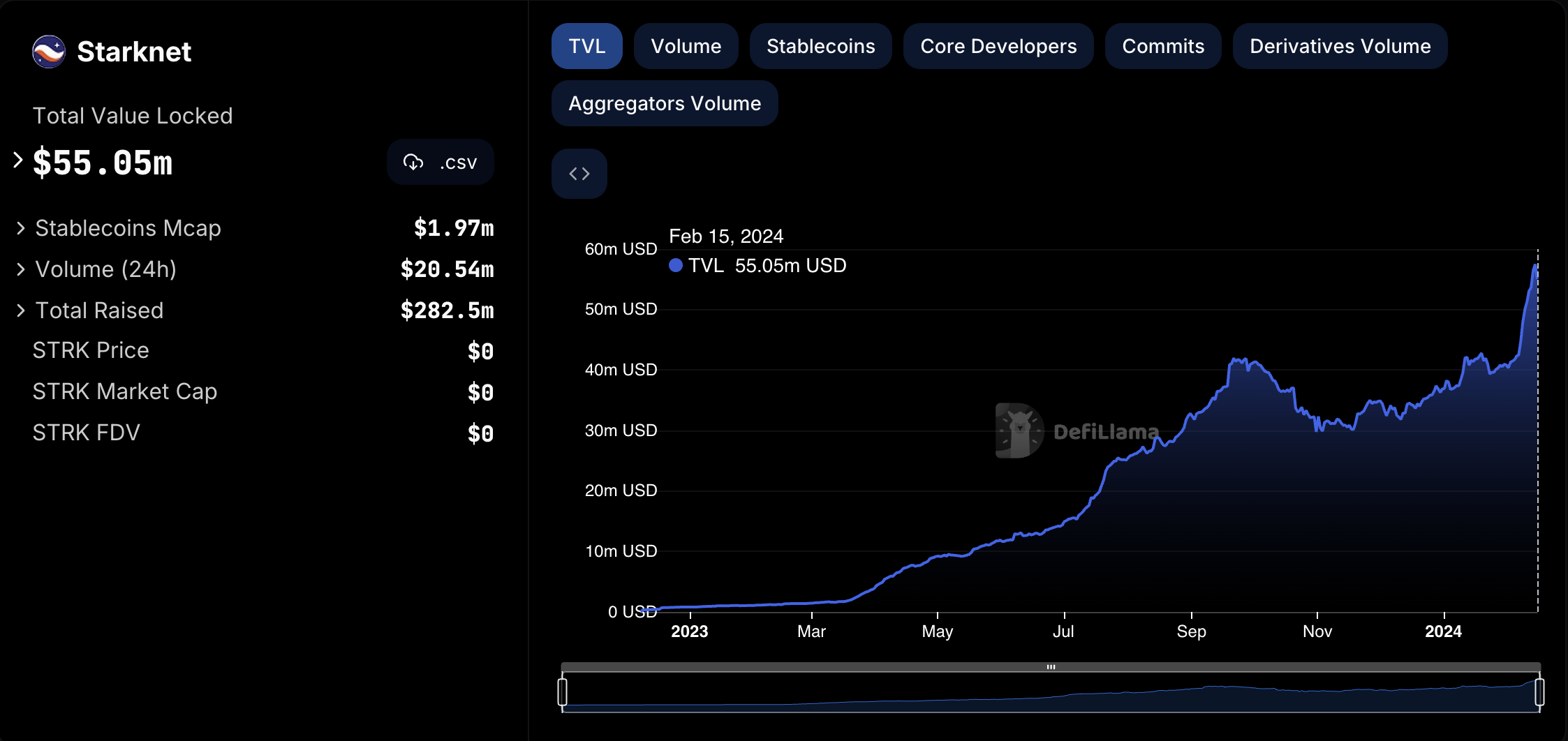 Since the beginning of 2023, Starknet has seen its total value locked surge from under $1 million to around $58 million, according to DefiLlama data.