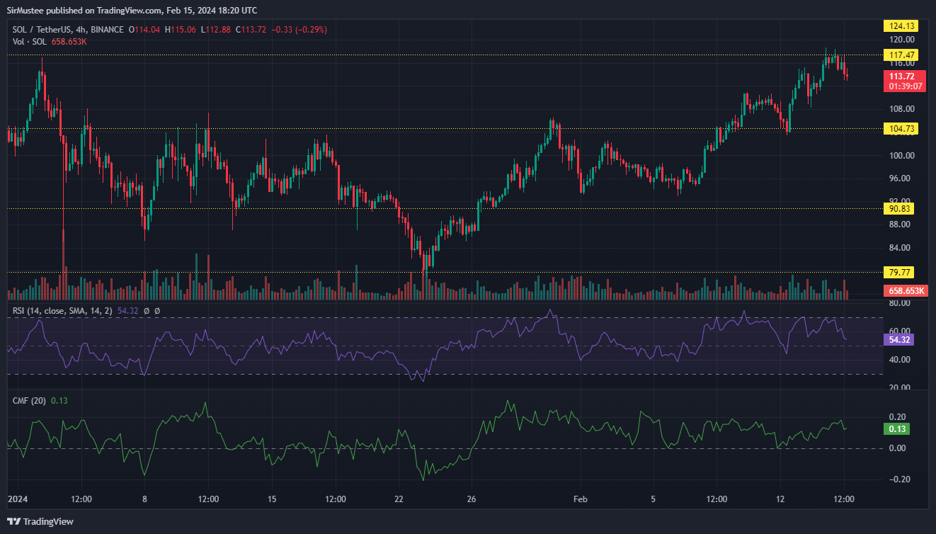 The price retracement at the $117 resistance may have slowed down the bullish momentum on SOL but the chart indicators showed key activity from buyers.