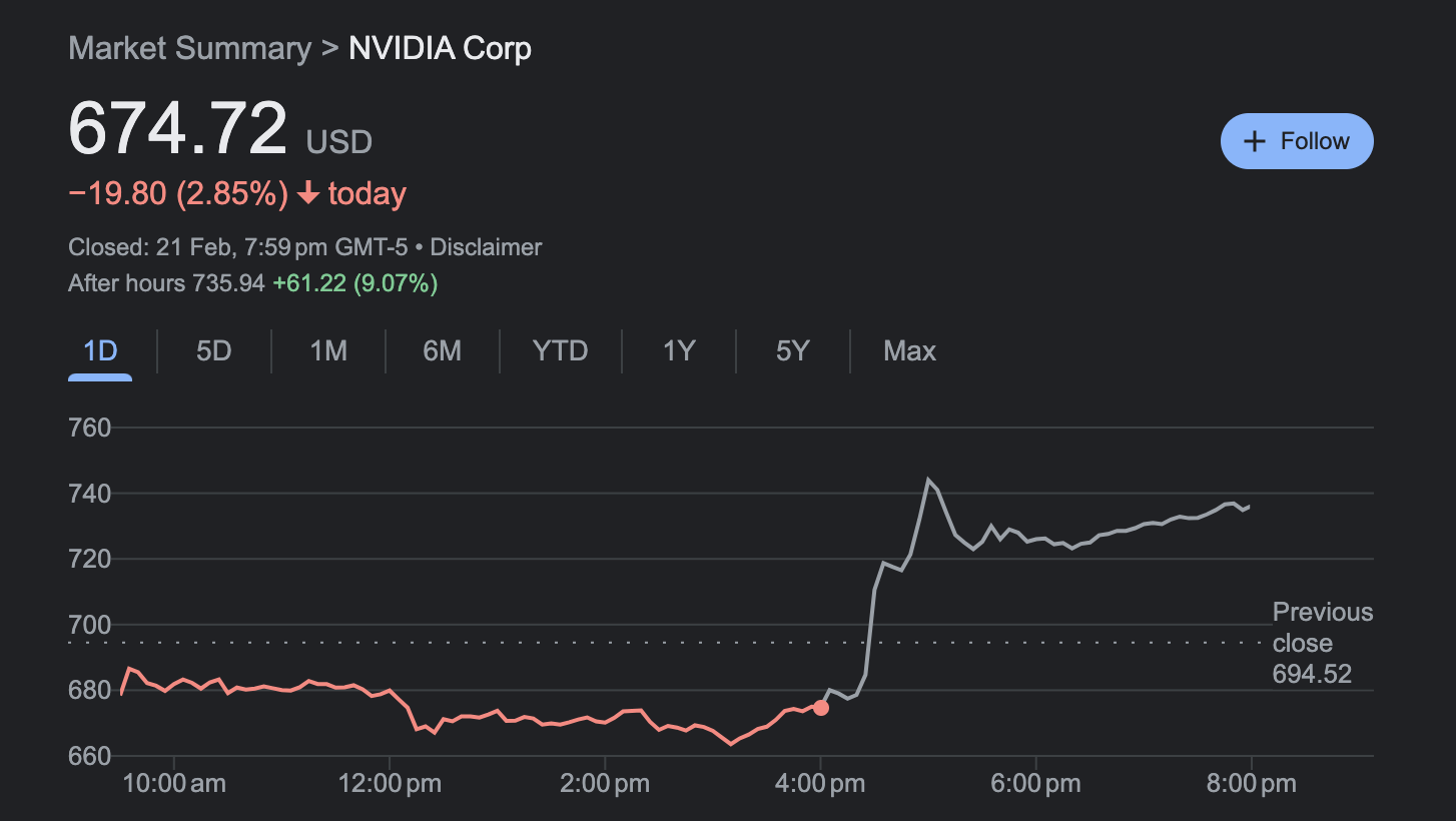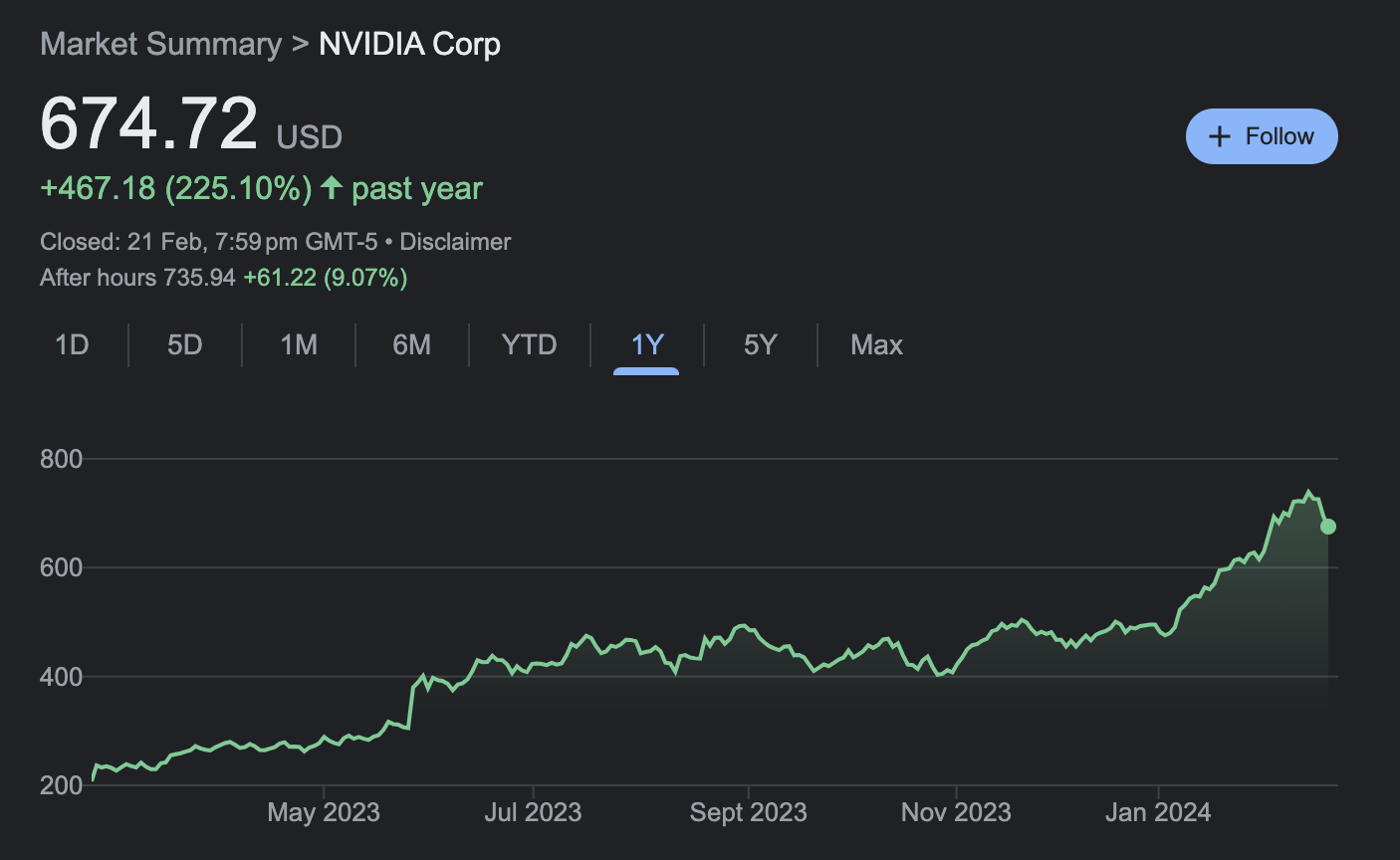 Having already jumped 225.10% over the year, NVIDIA saw its stock price surge another $20 per share in after-hours trading.