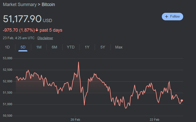 Bitcoin has been slightly down over the past five days whilst Ethereum is slightly up. Overall, a relatively sidewise trading week compared to last week.