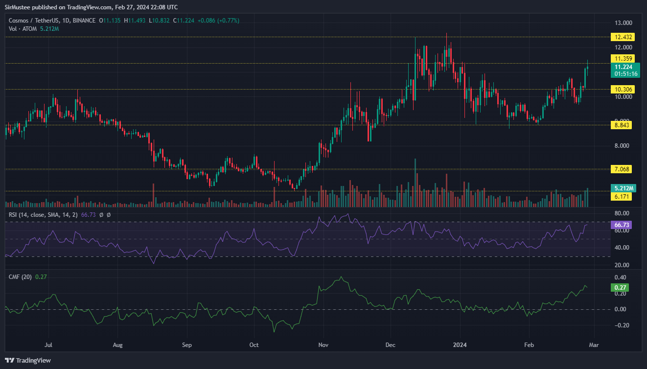 After hitting a steep price barrier around the $12.5 price zone, which led to a deep retracement, ATOM has recovered superbly in the month of February.