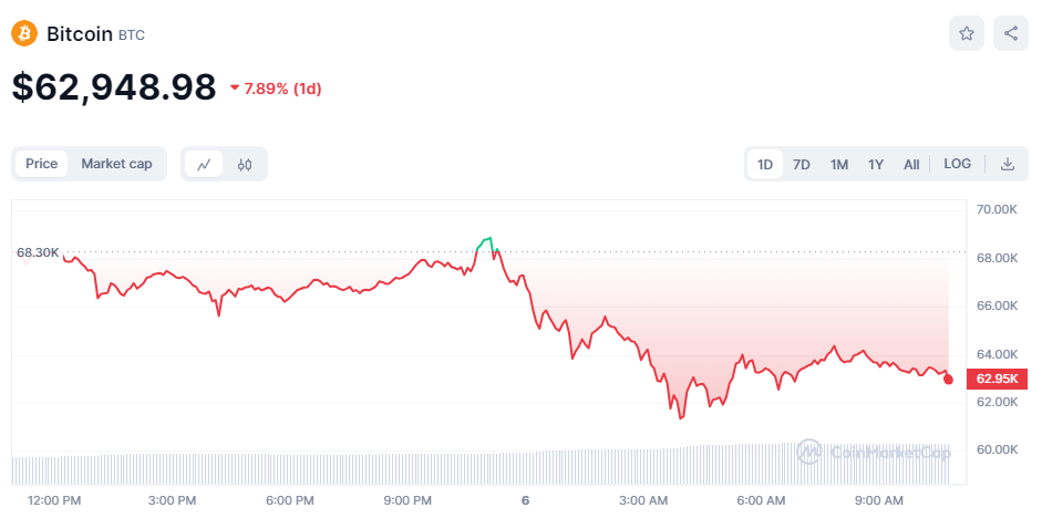 Bitcoin hit a historic high of $69,200 before falling to as low as $59,700 just six hours later. At the time of writing, Bitcoin is trading at just under $63,000.