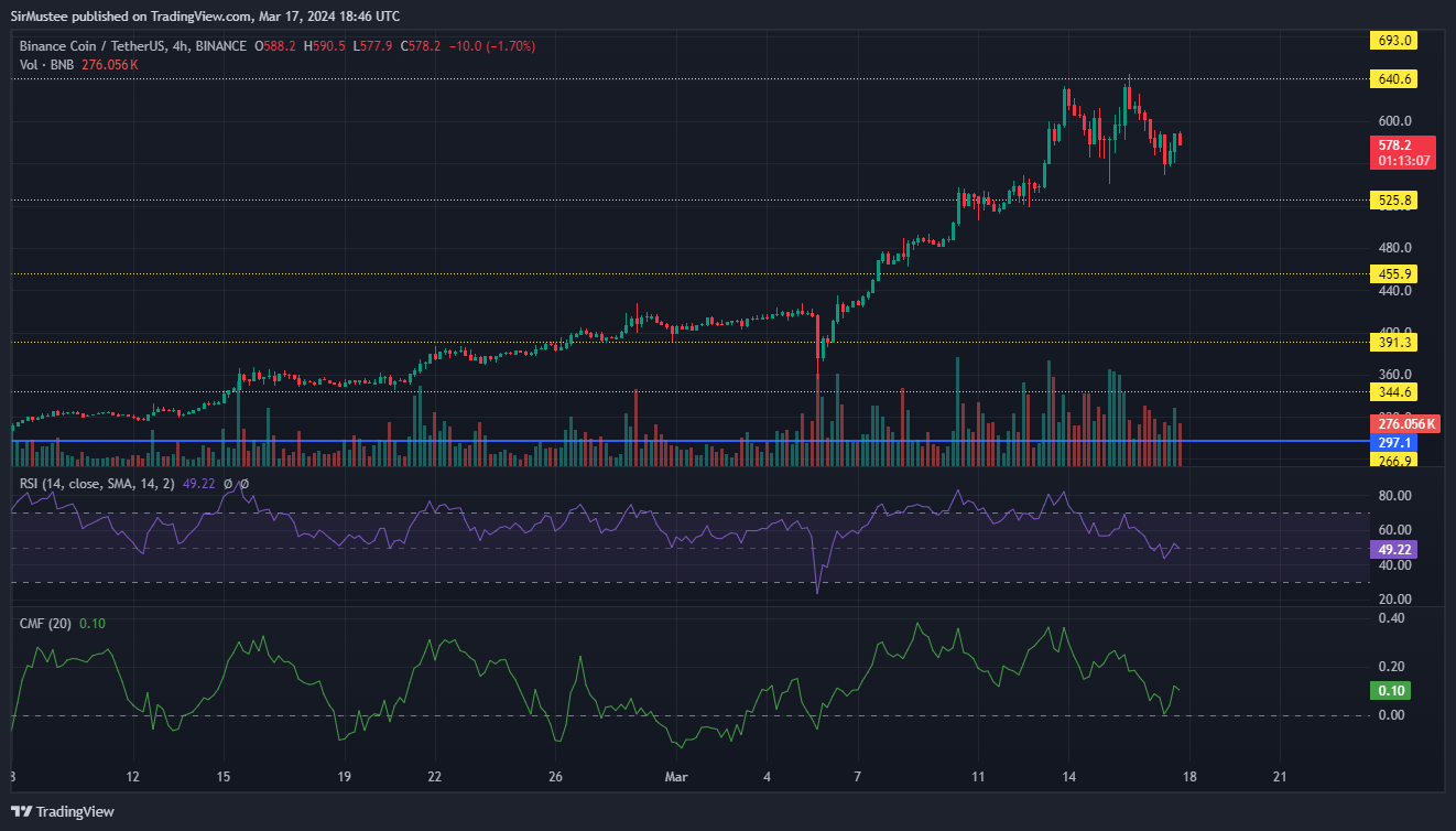 Our previous coverage of BNB, on 5 March, when the token stood at around $400, predicted $500 within the month, if the $455 resistance level was crossed.