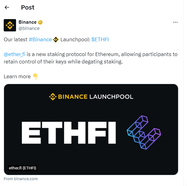 Binance recently announced Ether.fi as its 48th project on the Launchpool, with the appeal of Binance Launchpool lying in its accessibility and inclusivity. Unlike traditional token offerings that often favor large investors or early adopters, Launchpool opens the door for participation to a wider audience of retail investors.