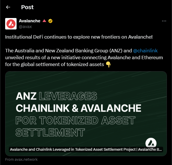 This makes it one of the fastest and most scalable blockchains. Recently, the Australia and New Zealand Banking Group (ANZ) leveraged Avalanche and Chainlink to testrun a tokenized asset settlement system. This testnet was deployed to show the ease of access and trade of tokenized assets across different networks and currencies.