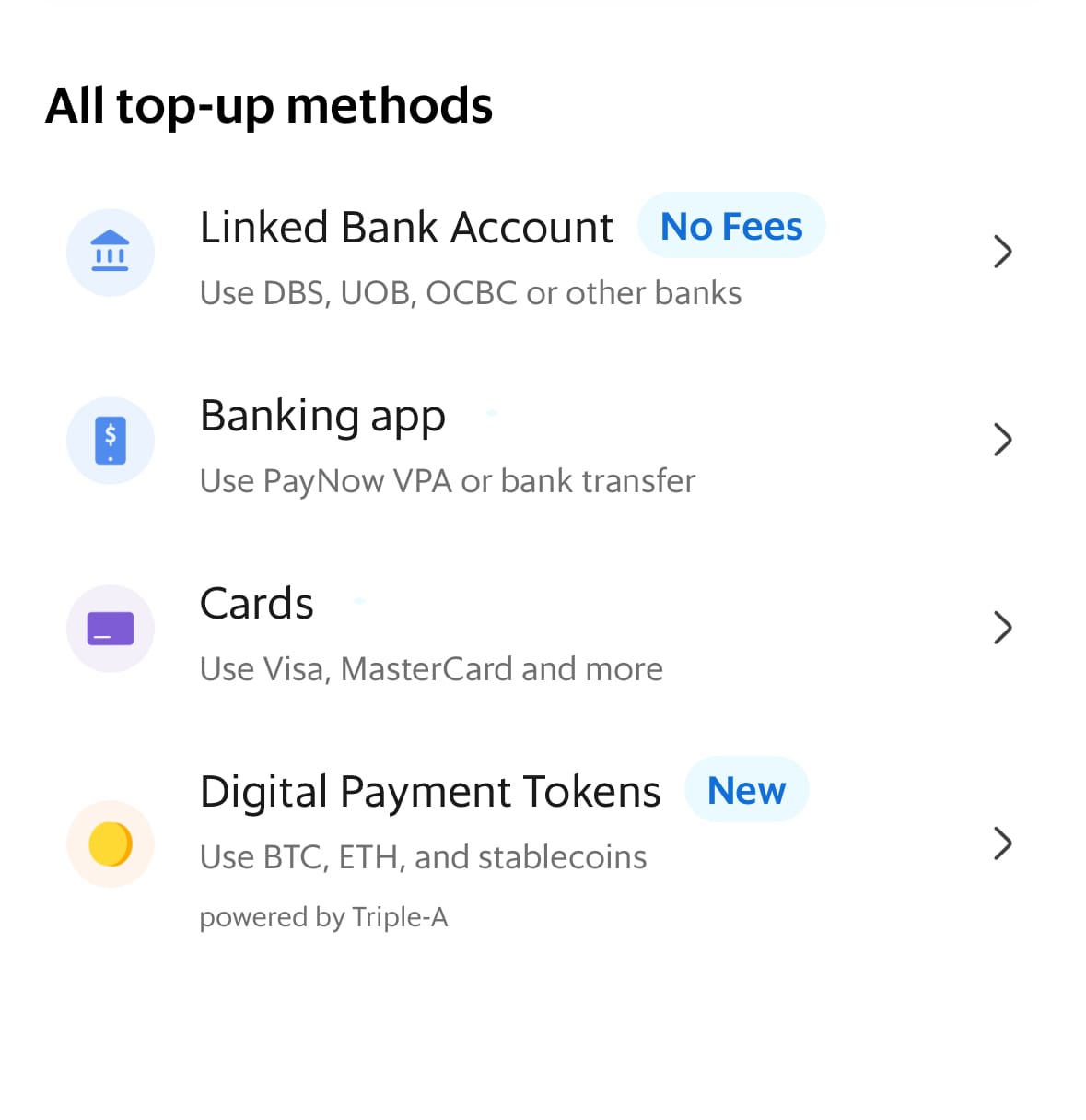 Powered by crypto payments provider Triple-A, the collaboration introduces five cryptocurrencies to the platform: Bitcoin, Ethereum, USDC, USDT, and Singapore Dollar-backed stablecoin, XSGD. The feature is accessed under the same section as topping up in Fiat. The process is simple enough; users can send their crypto to a wallet provided by Grab or via a QR code.