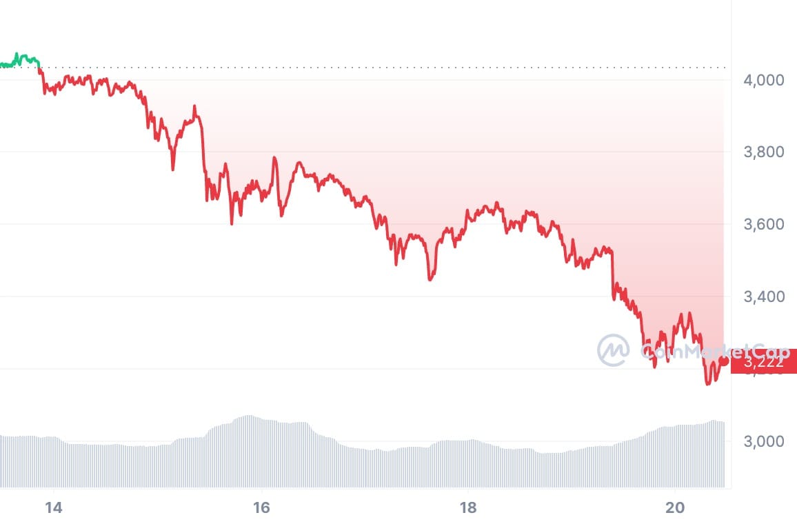 Regardless of the short-term tactics, Ethereum has undeniably been swept up in the market-wide sell-off. ETH prices have tumbled over 8%, currently hovering around $3,145 as of this morning.