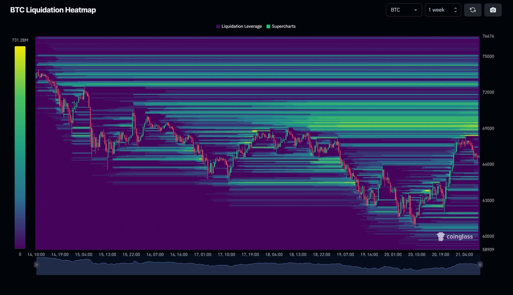 Conversely, a look at the liquidation heatmap on Coinglass showed that over $4 million worth of short positions were in danger of being liquidated if BTC crosses the $70K mark.