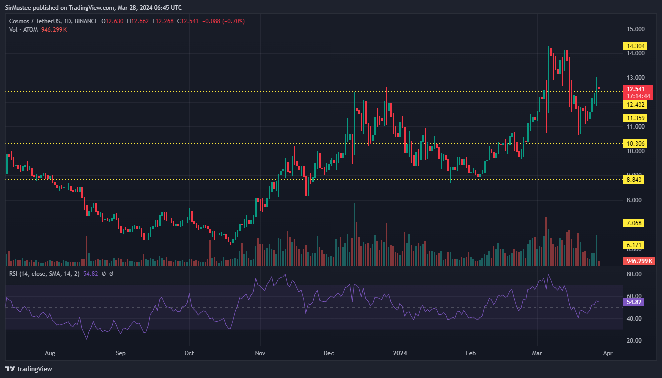 A look southward showed the $12.4 resistance level had been a stronghold for sellers in December 2023. However, ATOM buyers broke through it early in March and have repeated the feat again over the past 12 hours.