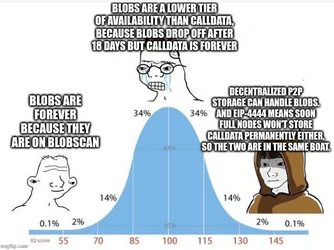 “Potentially, if each node stores small percentages of the history by default, we could even have roughly as many copies of each specific piece of history stored across the network as we do today,” Buterin said, attaching a meme to his blog post:
