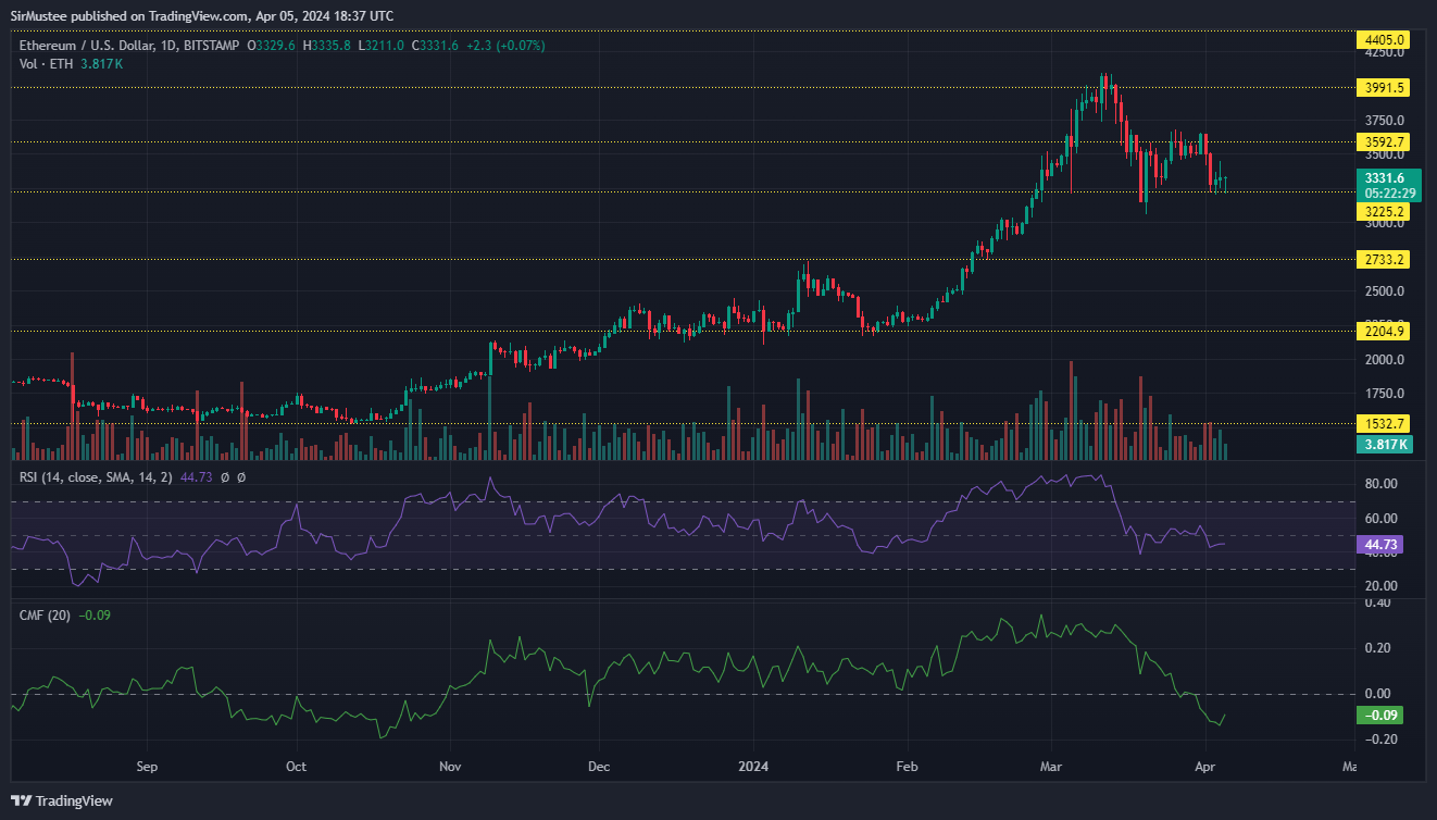 While the bullish price prediction played out right, the existence of selling pressure at the $4k range gave rise to a price dip that saw ETH briefly touch $3k. With the $3.3k floor holding over the past 72 hours, it could see buyers mount a solid comeback in the short term.