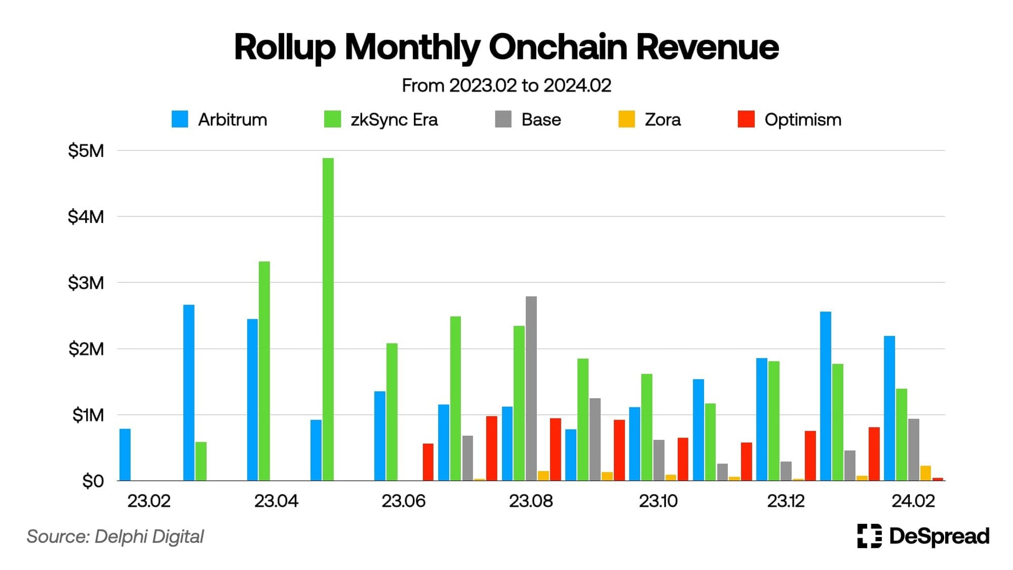 Arbitrum is also first in the number of dApps onboarded to the network which currently stands at 560. Furthermore, Arbitrum has recorded consistent increase in onchain revenue between Sept 2023 to Jan 2024.
