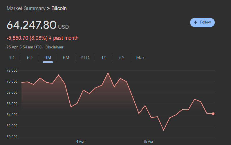 The bets on the crypto token have been split between safe-haven bids and as part of the risk assets sell-off. Over the past week, Bitcoin has shown a slow rise to about $64,600 from just under $60,000 despite the volatility.