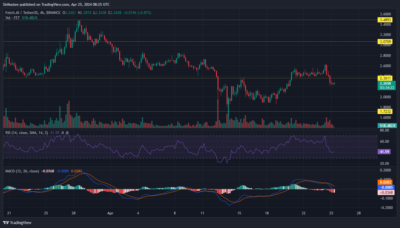Fetch.ai’s (FET) breakout from its range bound movement was short-lived with the AI token registering a 16% dip over the past 12 hours.