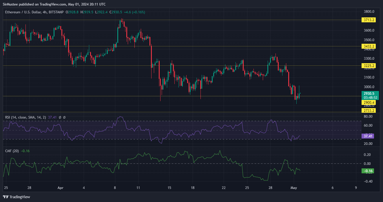 ETH hasn’t been spared from the bearish sentiment in the market. The top altcoin has seen its value drop by close to 15% over the past three days. However, the bullish price action at $2.9k signaled that buyers were looking to halt the selling pressure.