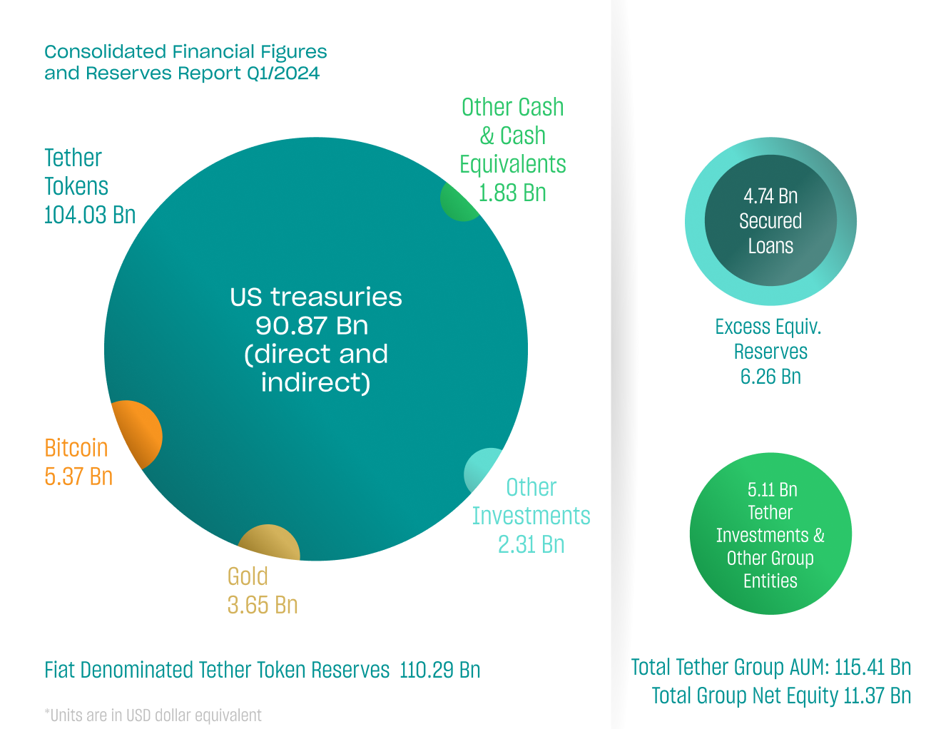 "With the first attestation of 2024, Tether has demonstrated its unwavering commitment to transparency, stability, liquidity, and responsible risk management…In reporting not just the composition of our reserves, but now the Group’s net equity of $11.37 billion, Tether is again raising the bar in the cryptocurrency industry in the realms of transparency and trust," Tether CEO Paolo Ardoino said in the announcement.