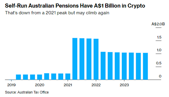 Self-managed pensions make up a quarter of Australia's $2.5 trillion pension system and have $664 million allocated in crypto.