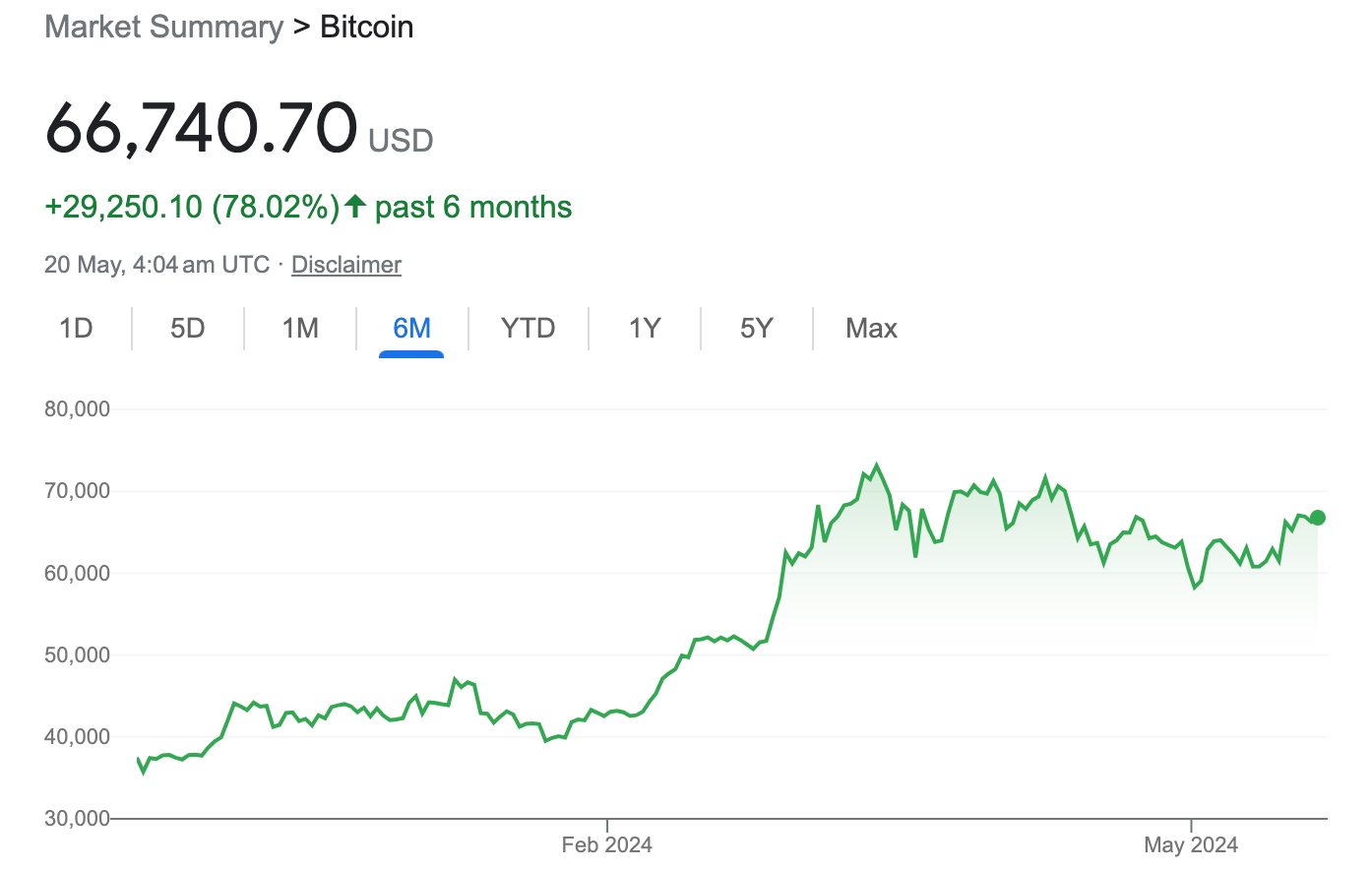 DCG argued Genesis should pay its customers no more than what the crypto assets were valued at the time of its bankruptcy filing in January 2023. Bitcoin was priced at $21,000 in January 2023, compared to its current price of $67,000.
