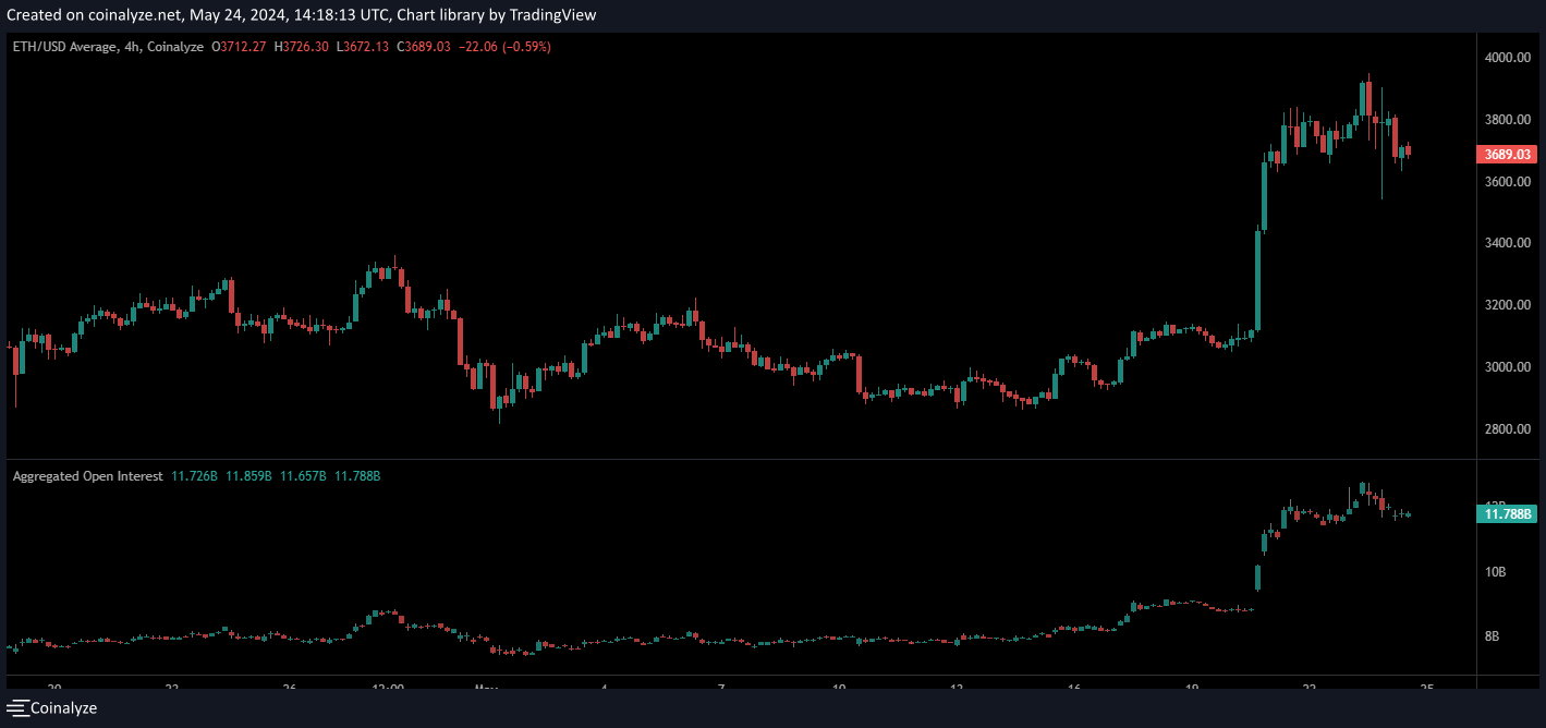 Despite the wave of joy that rippled across the crypto market, ETH’s spot market price responded sluggish with buyers unable to seize the bullish sentiment. ETH’s price traded between $3.5k and $3.9k during the time.