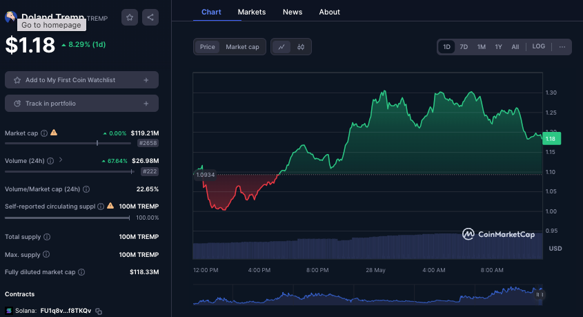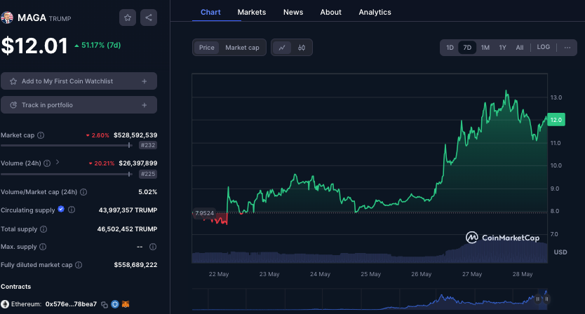 Memecoin Doland Tremp (TREMP) jumped over 15% yesterday whilst MAGA is up more than 50% over the week.