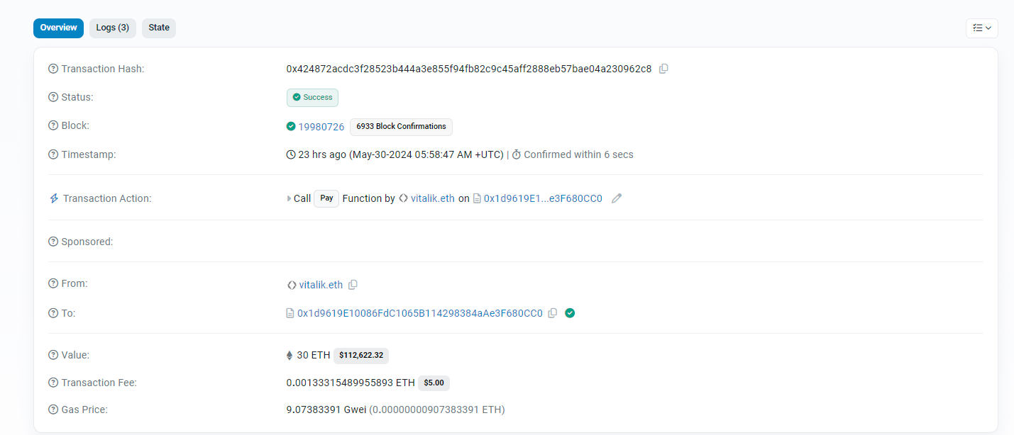 The Ethereum founder's transaction was witnessed on chain, with the $113,000 of Ethereum being sent from his wallet to Juicebox, an open-source crypto crowdfunding platform.