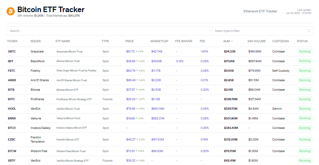 ProShares' Bitcoin ETF, ProShares Bitcoin Strategy ETF (BITO), is the sixth largest BTC ETF offering, with $598.78M in AUM.