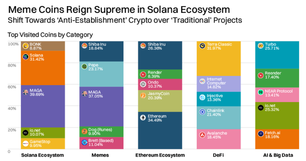SOL's impressive price gain isn't without substance either. Its ecosystem is finally proving its worth and for better or worse, is becoming a sustainable breeding ground for memecoin projects.