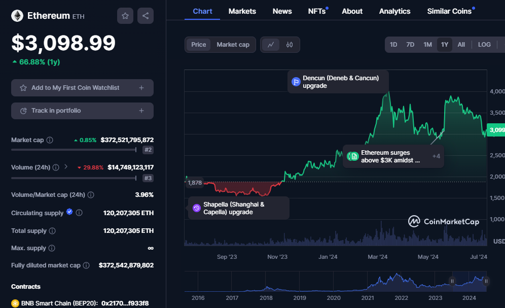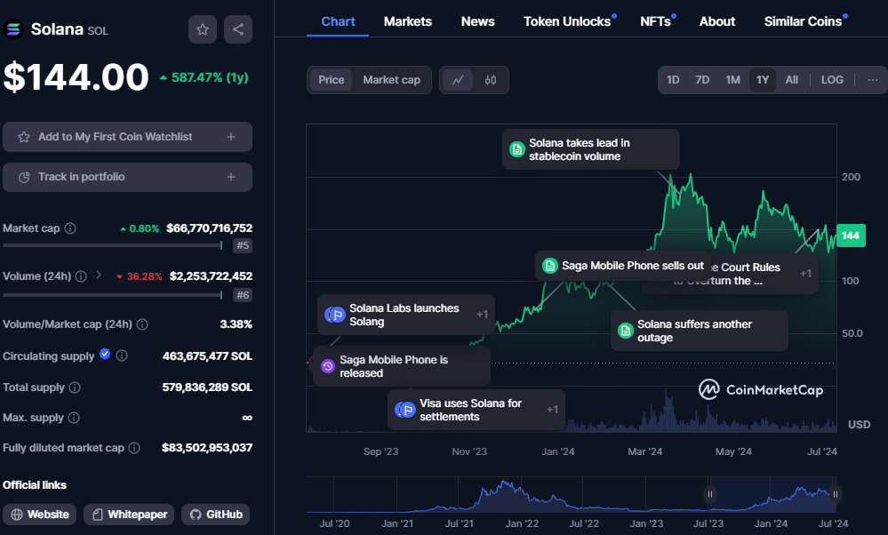 Solana has long been known as the "Ethereum Killer," at least by SOL bulls, and 2024 seems to be the year of SOL. Up almost 600% over the year, SOL's price gains simply dwarf ETH's measly 67% increase.