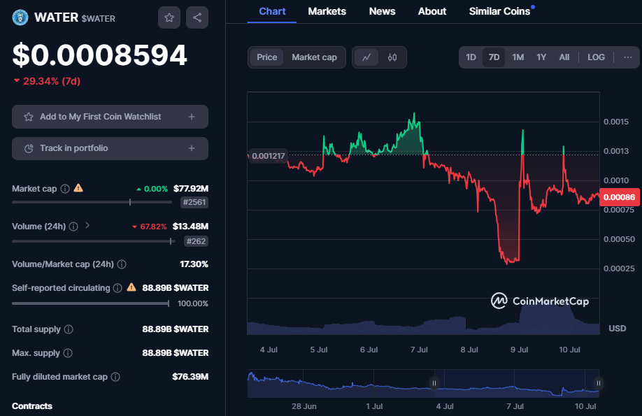 However, Water's price has since erased those gains, slipping 30% in the past 24 hours. Not exactly uncommon memecoin behaviour though.