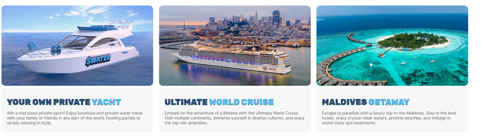Water token holders also have the opportunity to win a getaway trip to the Maldives or Iceland or their own private jet or a world cruise.