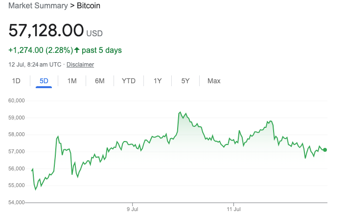 "Bitcoin has weathered the actual sell-off significantly better than the looming pressure of Mt. Gox and the German government, suggesting that fear was responsible for most of the decline in June," he reassured. "We believe Bitcoin will continue pushing toward $60,000 this week. Favorable macroeconomic news and reduced selling pressure will likely support its breakout from the downward trend."