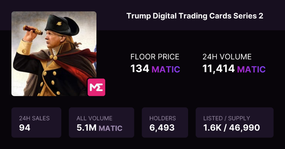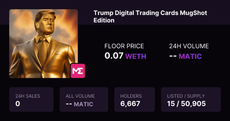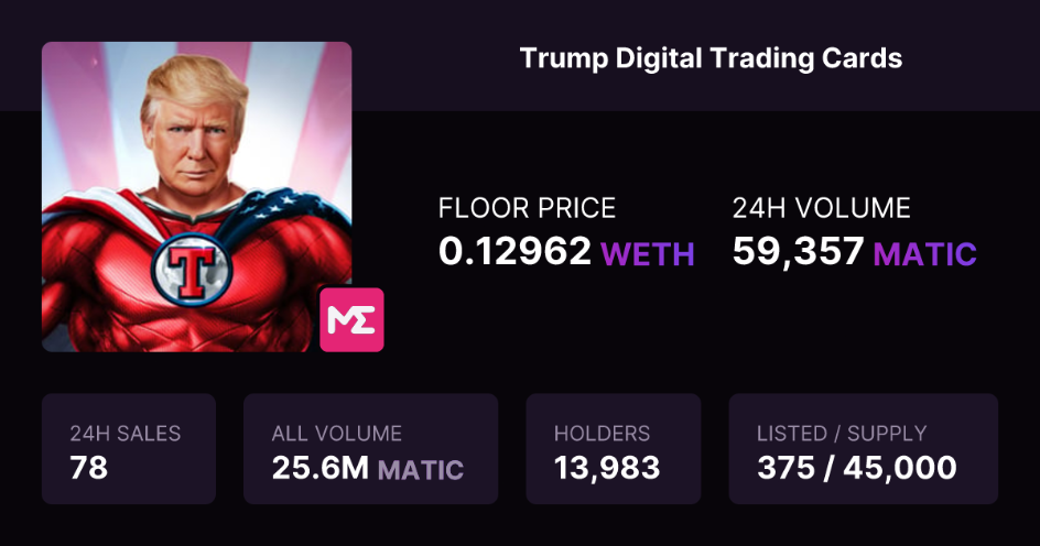 On December 15, 2022, former Trump released the Trump Digital Trading Cards collection of 45,000 NFTs. Priced at $99, the collection sold out in less than a day, generating $4.4 million in sales.