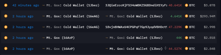 The combined volume of transactions totalled 190,000 BTC but Arkham data shows that Mt. Gox still holds 138,985 BTC in its main $8.7 billion wallet.