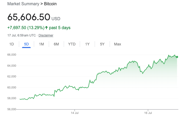 However, although suffering a slight dip from $65K to $62K following the news, Bitcoin's price has since risen beyond yesterday's level.