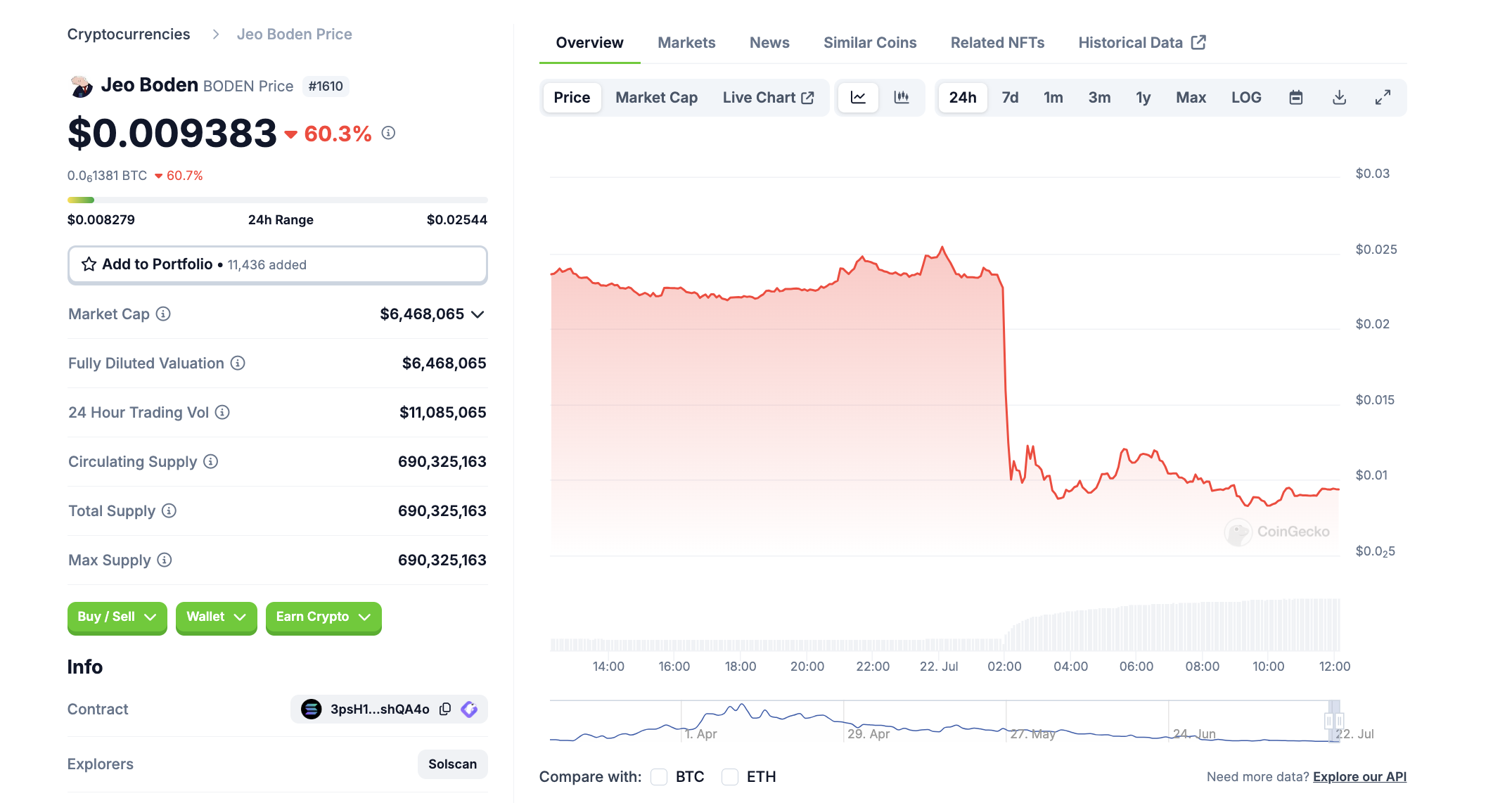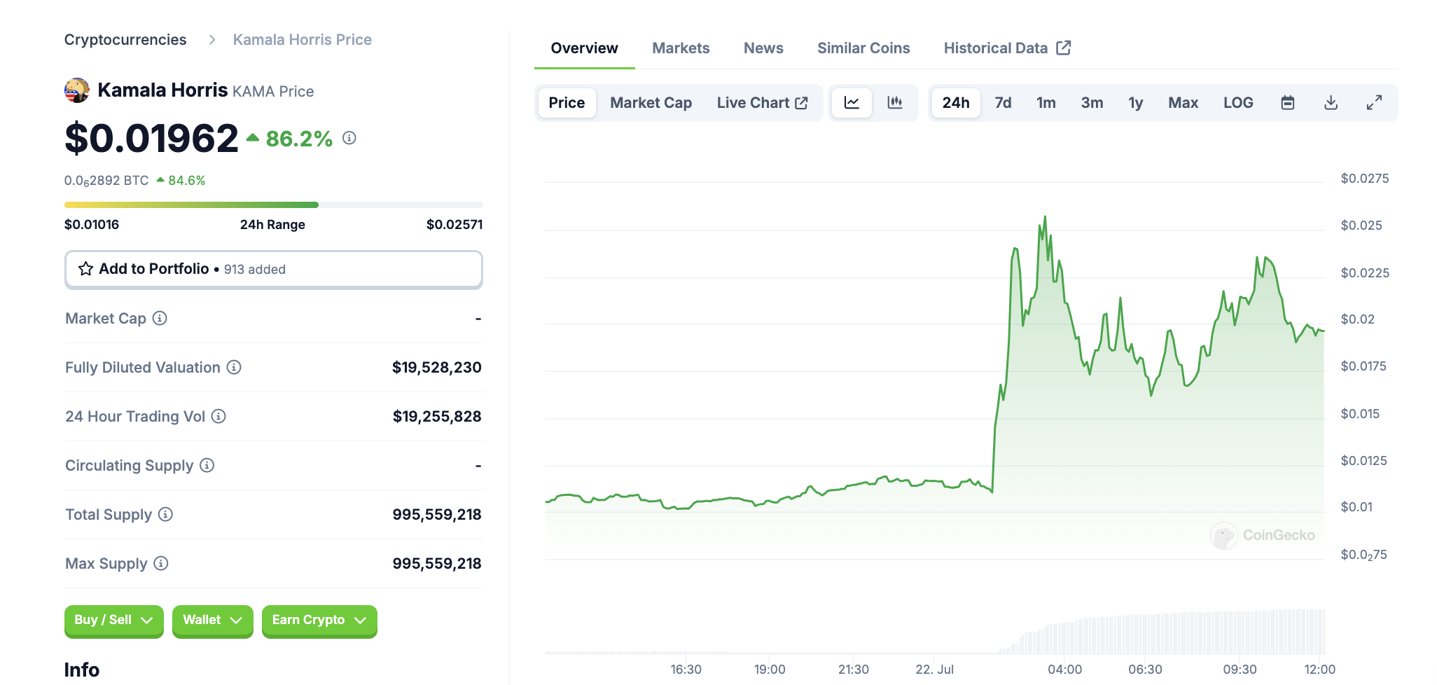 Meanwhile, over in memecoin land, Jeo Boden (BODEN) has crashed over 60.3% while Kamala Horris (KAMA) has surged 86.2% over the last 24 hours.