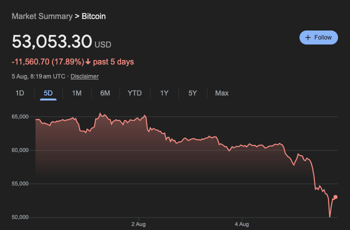 On Monday, as a result of widespread fear of loss in global financial markets, cryptocurrency prices plummeted, with Bitcoin falling by more than 10% and Ethereum dropping by more than any other digital currency since 2021.