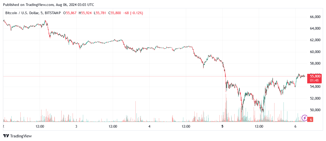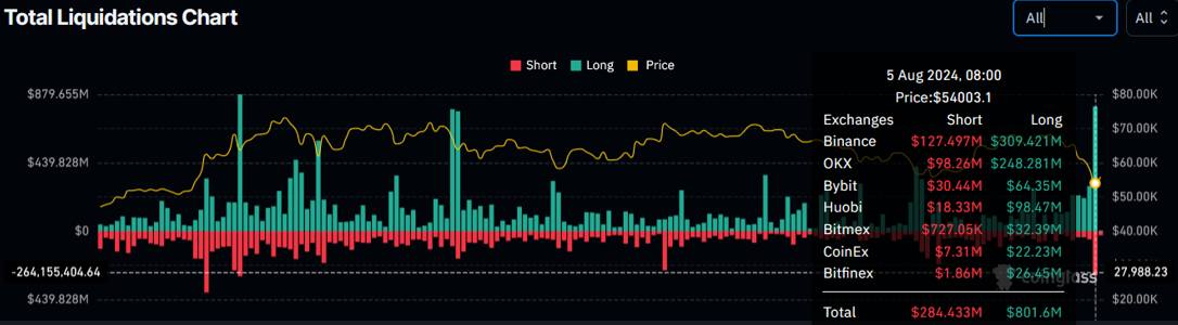 Post-liquidation, Bitcoin quickly rebound below $50,000 to approximately $55,800 at the time of writing. Bitcoin also saw a surge in Bitcoin ETF trading with volume reaching $5 billion in daily trading volume, the highest level since April.