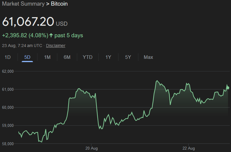 Over in the markets, both Bitcoin and Ethereum performed well over the week, with Bitcoin outperforming Ethereum. Bitcoin saw an increase of 4.08% while Ethereum saw a rise of 1.99%.
