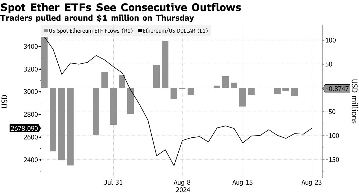 Bloomberg Intelligence reports that US spot Ether ETFs had a net withdrawal of $1 million from investors on Thursday.